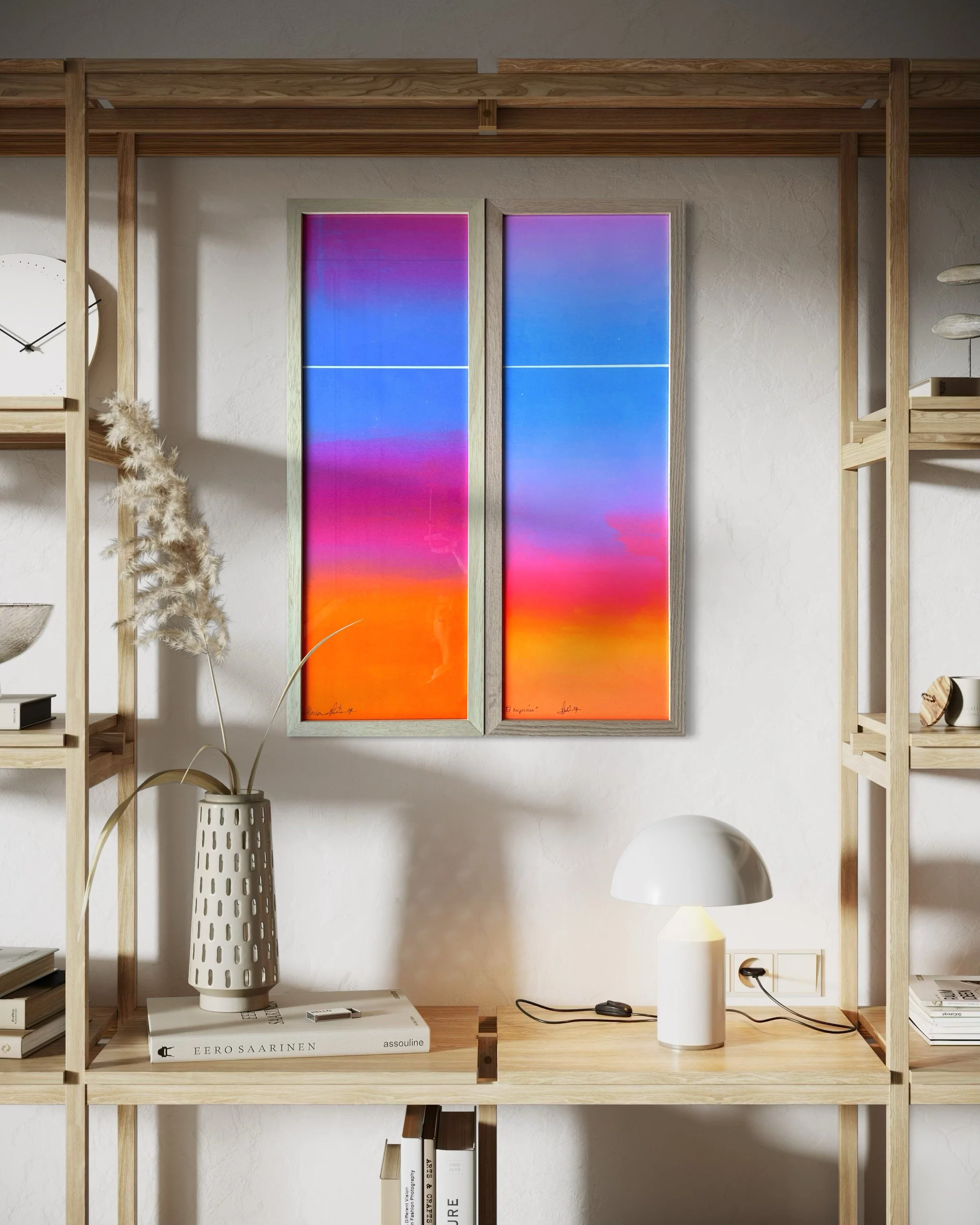 En Sérigraphie : Les instantanées - Ciels d’aurores et de crépuscules; lieux du présent.